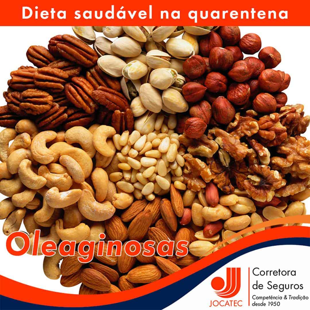Oleaginosos – nozes, pistache, castanha do Pará, avelã, macadâmia, castanha de caju e amêndoas.